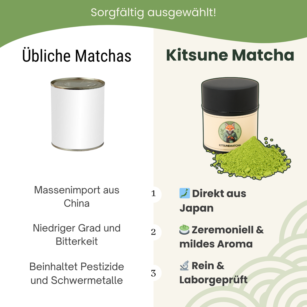 Eignet sich gut für eigenen Matcha Latte dank des milden Geschmacks.
